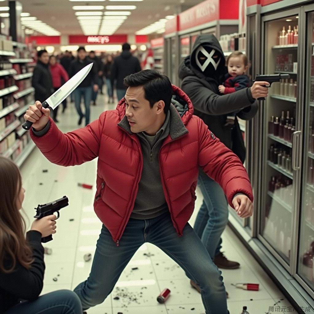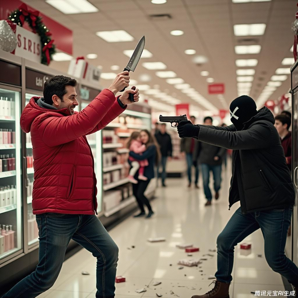 在意识闪回妻子分娩时监测仪的蜂鸣声之间,我的手掌已经按在羽绒服内袋里的陶瓷刀柄。三米外的香水柜台后,高中生艾米莉尖叫着撞翻古龙水货架——这是她用身体为我和怀中的双胞胎争取的0.7秒。