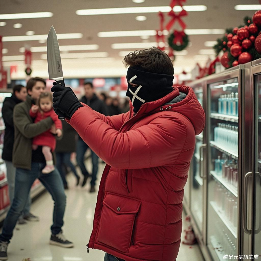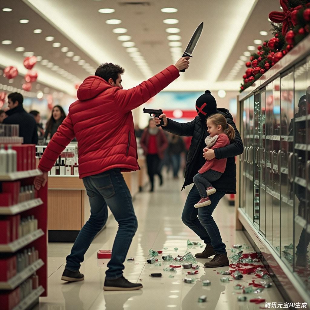 2024年12月24日21:47,新泽西州帕塞伊克县的梅西百货,我正弯腰为女儿系松开的鞋带。圣诞颂歌突然被金属摩擦声切断,旋转门方向传来子弹上膛的独特声响。穿着连帽衫的年轻人从手提袋抽出乌兹冲锋枪,黑色面罩上画着倒十字架。