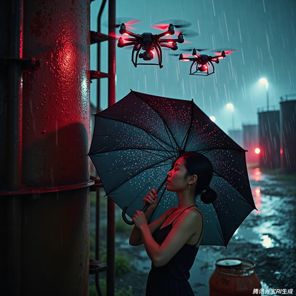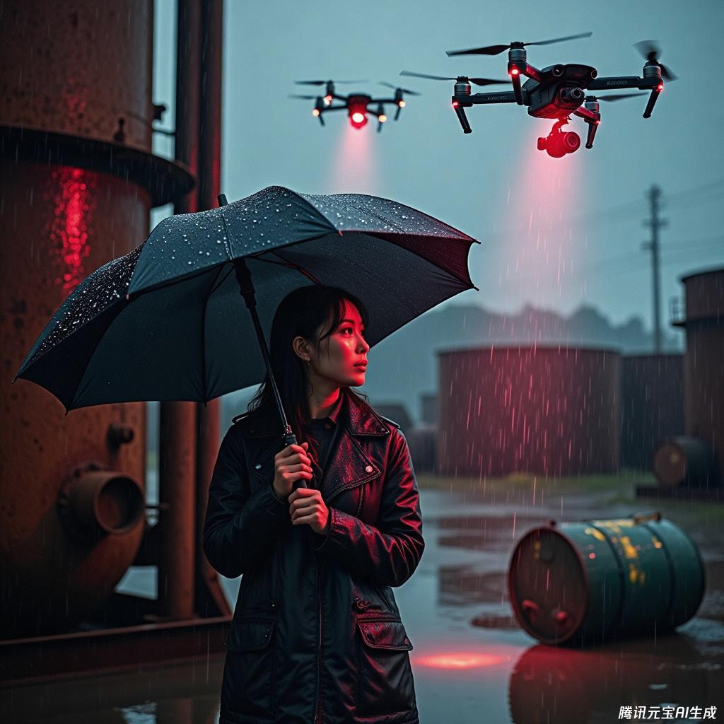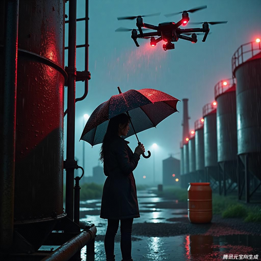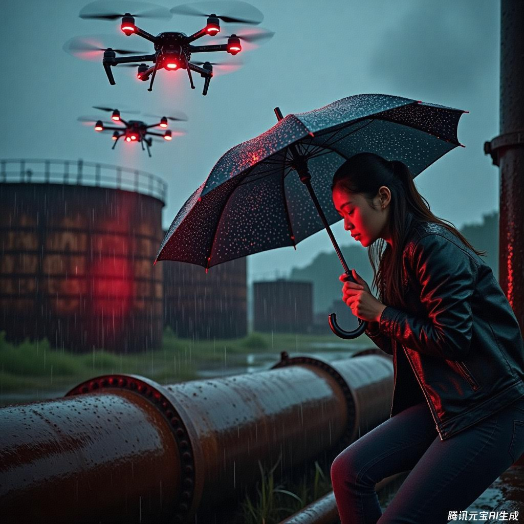 暴雨像子弹般击打着生锈的储油罐,艾琳蜷缩在废弃化工厂的阴影里。三架黑色六旋翼无人机正在头顶编织死亡之网,热成像仪的红色光斑扫过她藏身的角落...