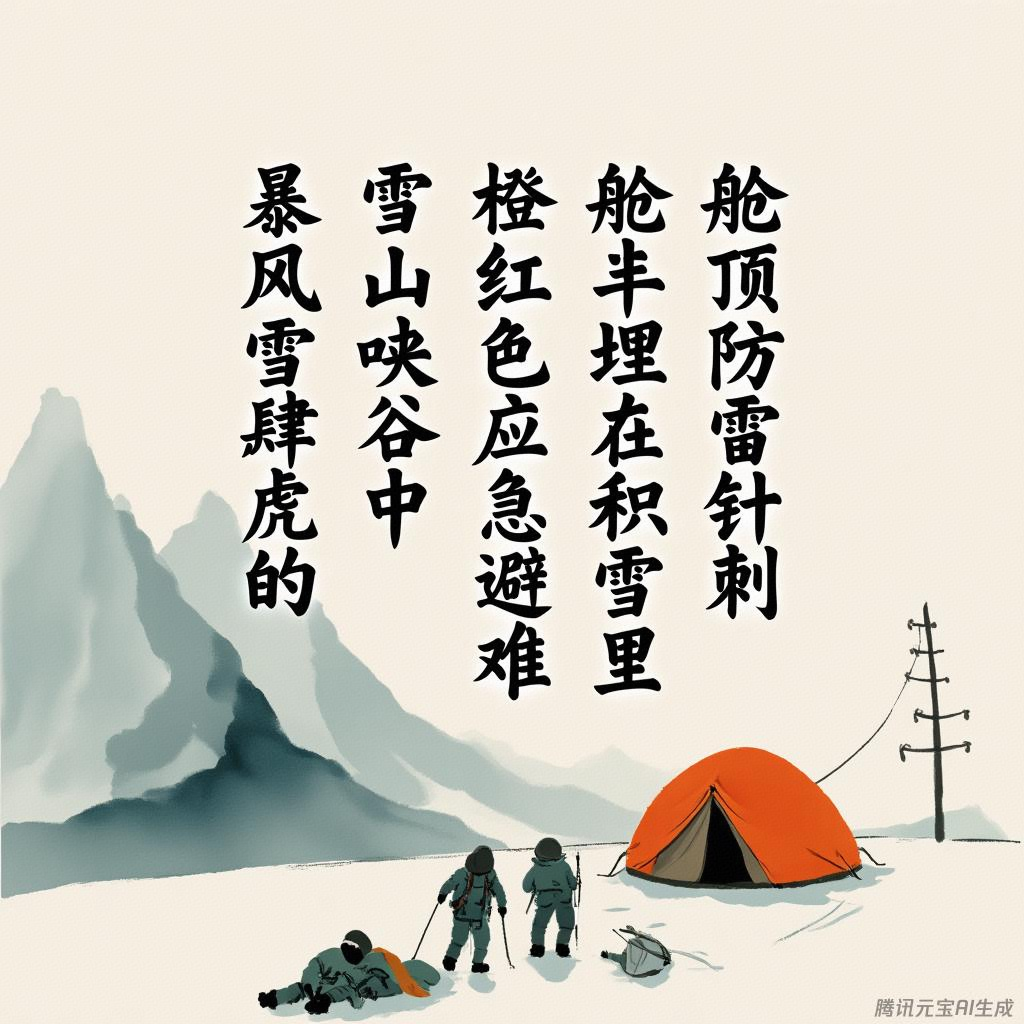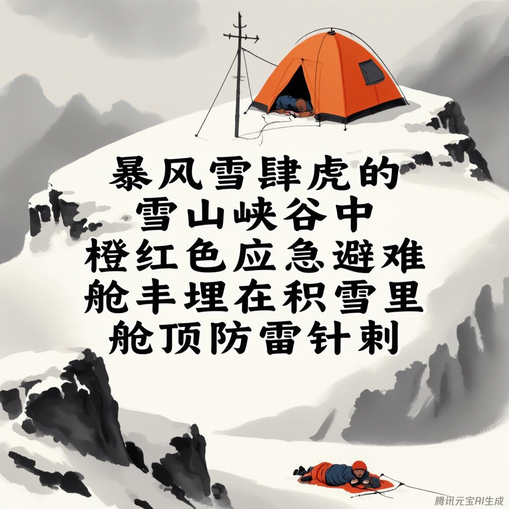| 暴雨+雷电 | 孤立巨石背风面/天然沟壑 | 闪电距离<300米或持续降雨>2小时 | 避雷优先→搭建防雷针→转移至低洼处 |