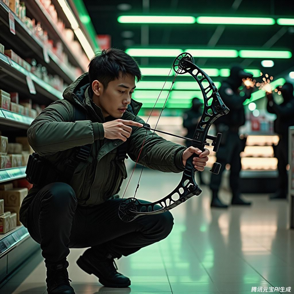 李墨的登山表显示03:17时,整个超市突然陷入黑暗。货架间传来金属摩擦声——三个黑影正用液压剪破坏珠宝柜。他握紧伪装成高尔夫球杆包的复合弓,想起三天前在射击场,退役特警教官演示的「盲射定位法」...