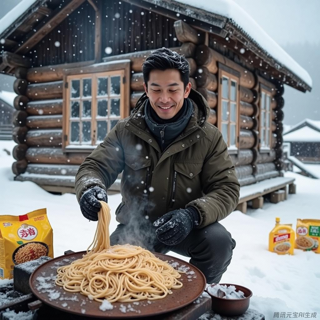 木屋铁炉里最后一块木炭熄灭时,小林在日记本上写道:"第7天,-15℃,两箱未开封的香菇炖鸡面包装鼓胀,而那袋用麦秸纸包裹的挂面依然散发着淡淡麦香..."